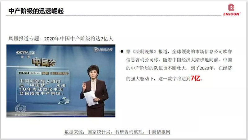 據(jù)《法制晚報》報道,隨著中國經(jīng)濟大踏步地向前,中國的中產(chǎn)階層的隊伍也不斷壯大,到了2020年,在經(jīng)濟的強大驅(qū)動下,這一數(shù)字將達到7億。這7個億的中產(chǎn)階級消費能力強勁,同時他們不再局限于滿足溫飽問題,更多的是對精神層次的更高追求,而家庭影院作為精神層次追求的主流方式將成為他們的首選。